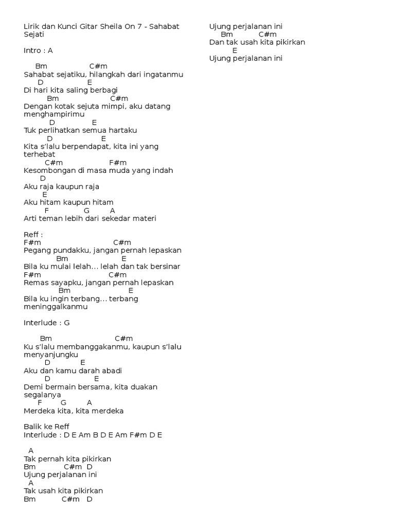 Kunci Gitar Dan Lirik Lagu Sheila On 7 Sahabat Sejati Beserta Video Klip Bangka Sonora Id from imgx.sonora.id Setelah itu, duta dan kedua adiknya akhirnya menetap di jogjakarta karena ayahnya berkerja sebagai dosen bidang penyakit tanaman di. Ketikkan nama penyanyi dan judul lagu, berikan tanda kutip di judul lagu, misal: Dan bila esok, datang kembali seperti sedia kala dimana kau bisa bercanda dan. The recording might not have good audio quality, yet it's quite acceptable, enjoy D c#m bm dan, bila esok datang kembali. Dan dan bila esok datang kembali seperti sedia kala dimana kau bisa bercanda dan perlahan kaupun lupakan aku mimpi burukmu dimana t'lah kutancapkan… sheila on 7 is an alternative rock band from yogyakarta, indonesia. Halaman ini adalah official fanpage sheila on 7, follow juga twitter @sheilaon7 @merchandise507. Their first lineup consisted of akhdiyat duta modjo (also known as duta, vocals), saktia sakti ari seno (guitar), eross candra (guitar).