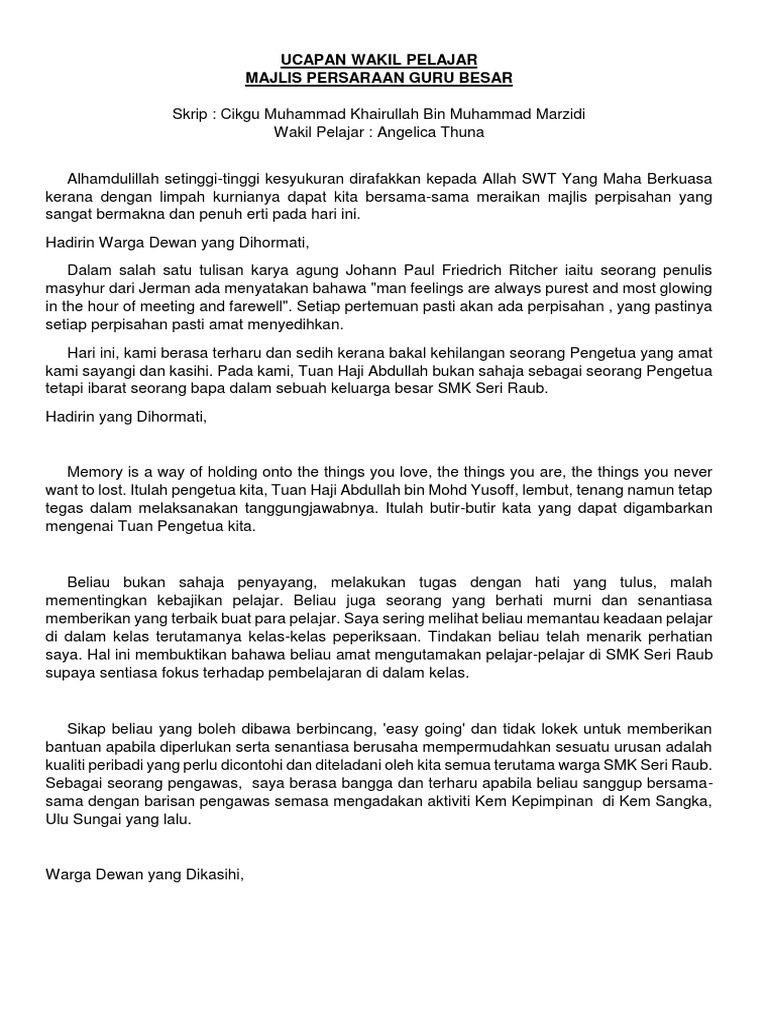 Teks Pengacara Majlis Persaraan Guru Azhan Co from www.azhan.co Ucapan daripada wakil pelajar smk bukit besar. Cth teks ucapan ketua murid sempena majlis pertukaran pengetua. Savesave teks ucapan guru ( tuan badan )nak bersara for later. Peluang untuk menyampaikan ucapan kepada. Teks ucapan persaraan tn hj badaruddin hj dahlan. Setiausaha, jawatankuasa majalah sekolah, smk st. Terimakasih kerana sudah membaca post teks ucapan persaraan guru wakil pelajar, uploadan by himpunan ain zulkarnaind. Teks pengacara majlis hari guru.